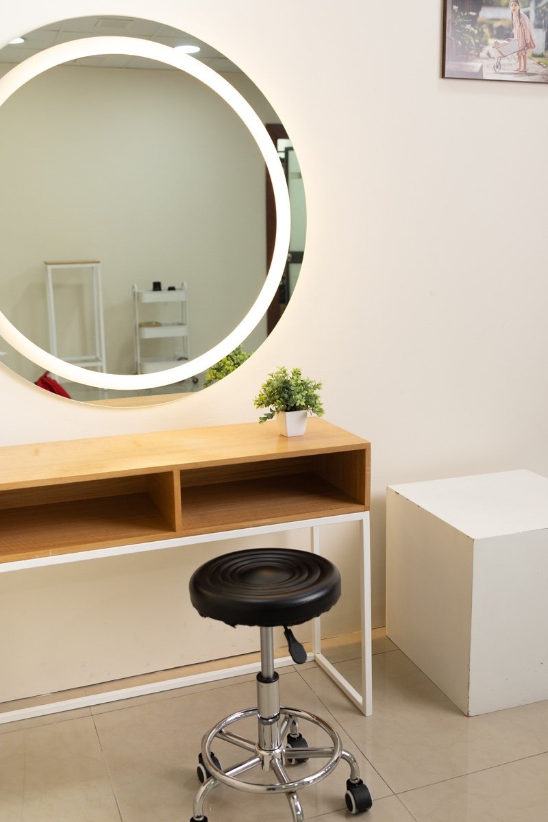 Contamos con un área de maquillaje encantadora, diseñada para que te sientas cómoda, relajada y cuidada antes de tu sesión. También tenemos un acogedor recibidor, perfecto para que te sientes, tomes algo y te prepares con tranquilidad.